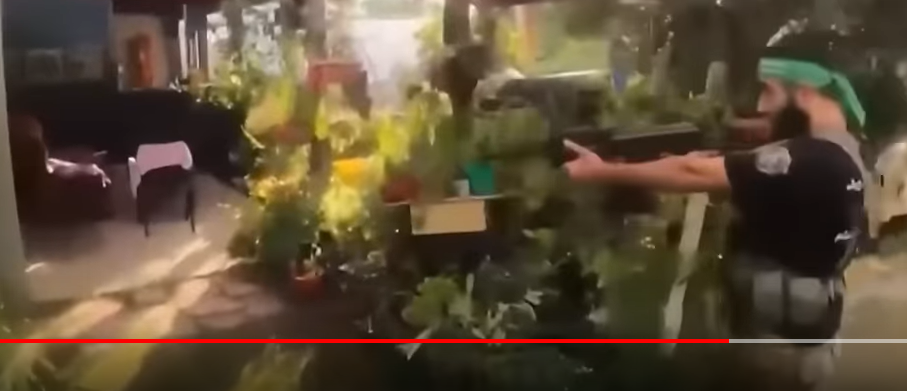wir ehen hierreineb Hamasterroristen, noch im gazastreifen.gefimt durch die Bodycam eines anderen Terroristen